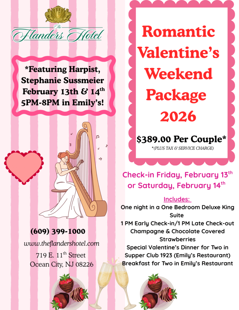 Discover the historic charm and modern elegance of The Flanders Hotel, a celebrated icon on the Ocean City Boardwalk. Since its establishment in 1923, this premier destination has combined vintage grandeur with contemporary luxury, earning its place on the National Register of Historic Places. As Ocean City’s “Jewel of the Southern Shore,” The Flanders offers a truly unique seaside experience.